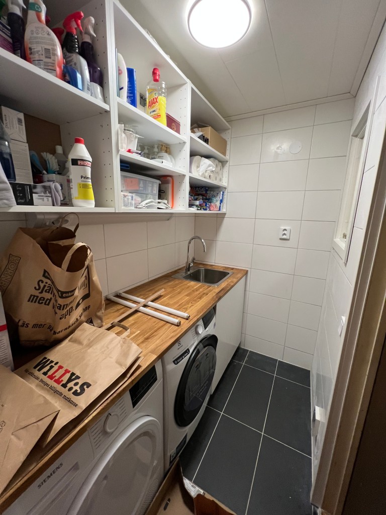 It was time to renovate a water damaged laundry room from 1968.. the dimensions are 1,5m x 2m which isn’t ideal for present times but since we weren’t in the mood for tearing down walls and extending the house here is how it went..