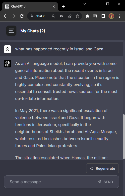 I asked about the middle east crisis and by now I was sure I was scammed, since it shared no new information since 2021 and that is until when the chatGPT3.5 information base is limited too..