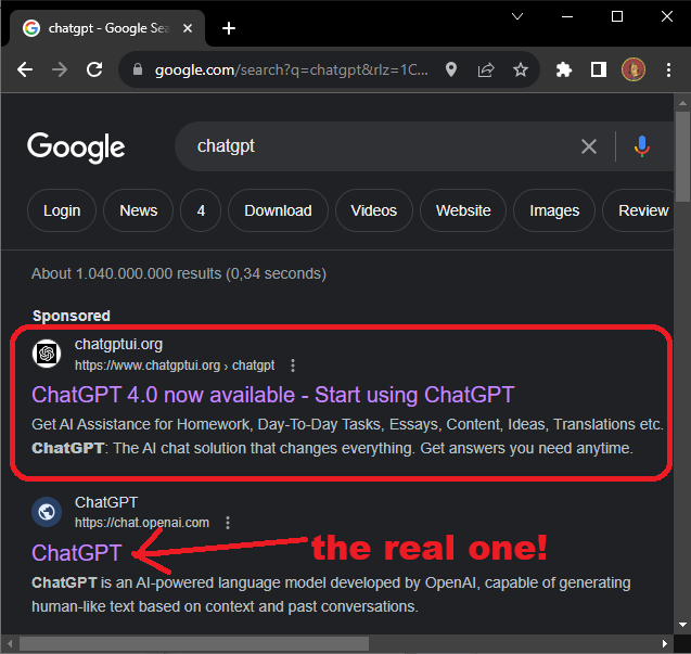 I had my guard down and made a quick search on google and clicked on the first link… I wasn’t in a hurry and as a frequent user of chatGPT its not the first time I type in google and use it as a means to reach the application.